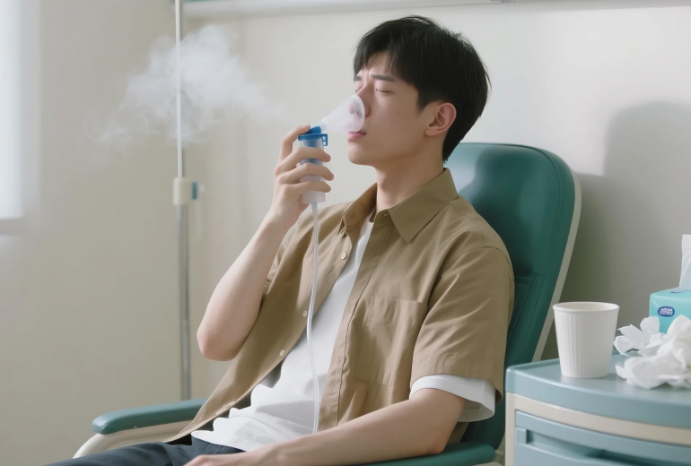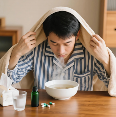 將5-8滴尤加利精油滴入熱水中,近距離吸入,可治療感冒、鼻塞。